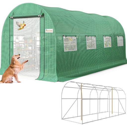 This mid-sized tunnel greenhouse from KING BIRD is built with serious backyard growers in mind. With a galvanized steel frame reinforced by extra crossbars and stiffeners, it’s made to handle wind, rain, and moderate snow. The upgraded 150g/m² PE cover offers superior UV protection while keeping warmth inside, helping plants thrive well beyond the traditional growing season. Its dual-layer doors and eight screened windows allow you to manage airflow and temperature effortlessly, while still keeping pests out.