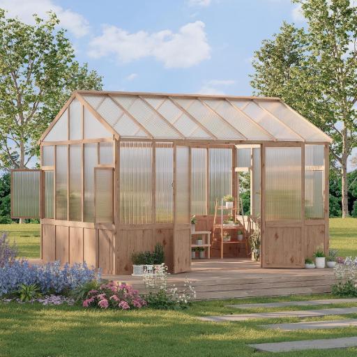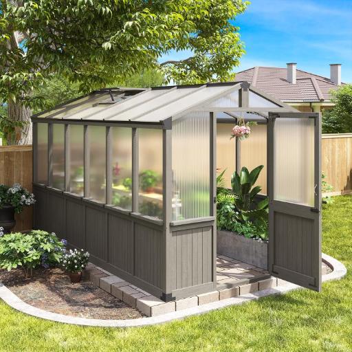 Aoxun 6×12 FT Wooden Greenhouse : Automatic roof vent, UV-filtering panels, and smart use of space.