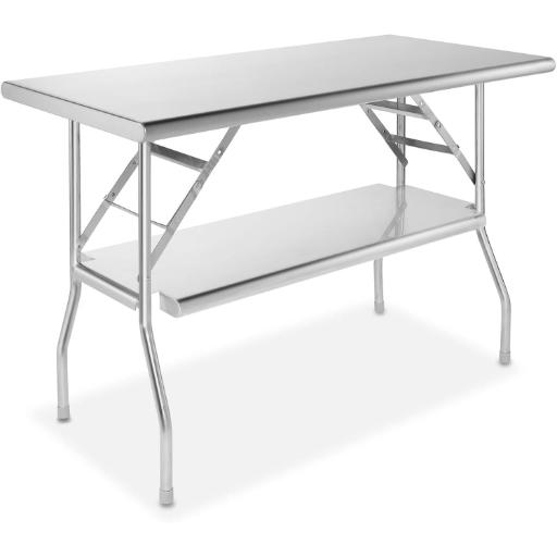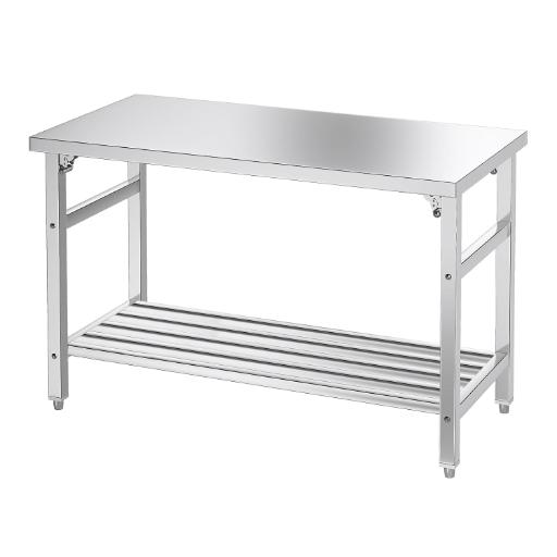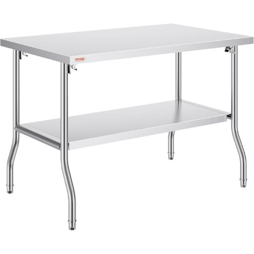 The VEVOR 48 x 30 inch Folding Stainless Steel Prep Table strikes an ideal balance between industrial strength and on-the-go convenience. It’s built to take a beating, easy to maintain, and folds up neatly when not in use. Minor portability quirks aside, this table is a top-tier choice for professionals who need flexible workspace without compromising durability.