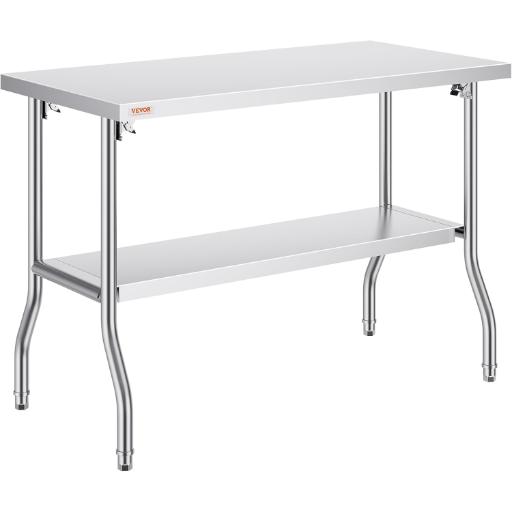 - Most Versatile: VEVOR 48 x 30 Inch Double Shelf Table – Great mix of workspace, storage, and foldability.
