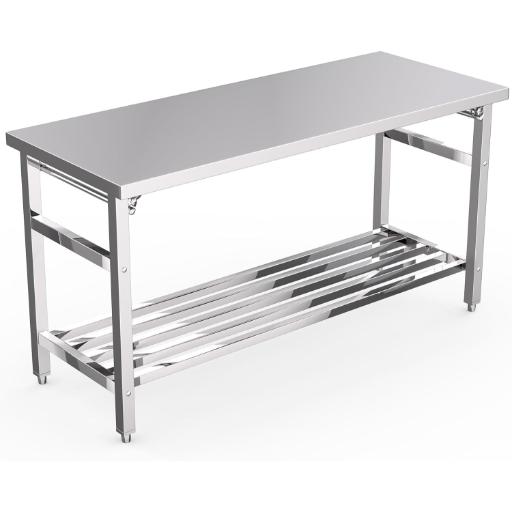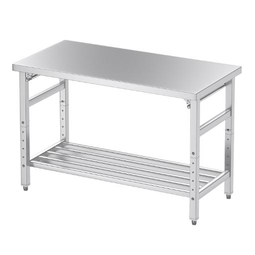A strong table should be able to handle heavy mixers, stacks of ingredients, or equipment. Models like the VEVOR and GRIDMANN offer 500+ lbs support on the top shelf, which is ideal for commercial use.
