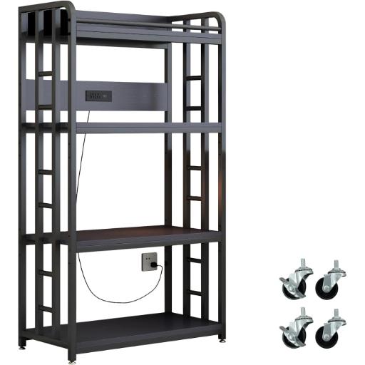 This heavy duty kitchen baker’s rack with power outlet delivers top-tier functionality and smart aesthetics in one package. Whether used as a microwave station, coffee bar, or rolling storage shelf, it fits right into daily routines and handles heavy kitchen tools with ease. A great choice for anyone who values mobility, style, and workspace efficiency.