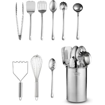 - 10-piece stainless steel kitchen utensil set with holder