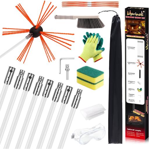 Built with a focus on durability and efficiency, the Morinoli 26 Feet Chimney Sweep Kit is a solid choice for homeowners looking to take chimney maintenance into their own hands. It features a unique chrome button locking system that ensures the rods stay firmly in place during use—whether spinning clockwise or counterclockwise. The sharp-edged nylon brush is shaped to cover more surface area in a single pass, helping to remove stubborn creosote and soot with minimal effort. Ideal for routine cleanings, it comes with a complete set of accessories for a safer and cleaner process.