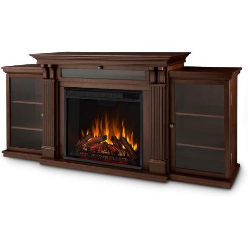 Blending traditional craftsmanship with practical entertainment features, the Real Flame Calie Electric Fireplace adds elegance and warmth to any living space. Wrapped in a rich espresso finish, this 67-inch media console supports TVs up to 65 inches while delivering the cozy charm of a flickering fire—no chimney or gas line required. With adjustable shelving, smooth glass cabinet doors, and multiple flame settings, it’s designed to bring both utility and ambiance to your living room or bedroom.