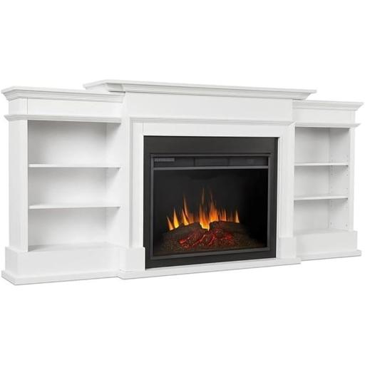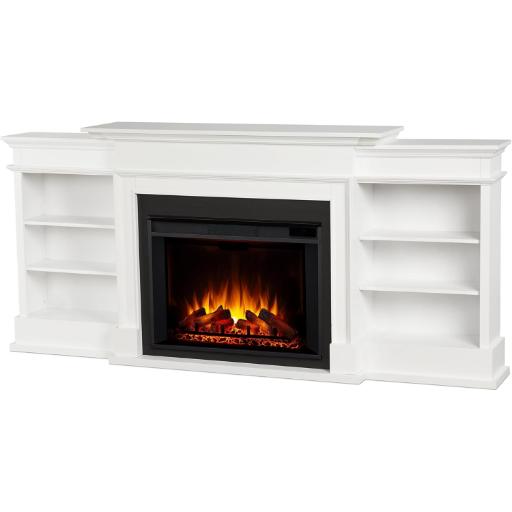 If you’re looking for a high-impact centerpiece that delivers both visual drama and real warmth, the Monte Vista Electric Fireplace by Real Flame checks every box. Spanning over nine feet wide, this freestanding unit offers a seamless blend of traditional style and modern function. With a crisp white painted finish, elegant molding, and flanking bookcases, it doesn’t just heat your room—it elevates the entire space. Ideal for large living rooms or open-concept designs, this fireplace is as functional as it is stately.