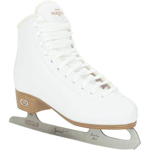 The Riedell Horizon figure ice skates for women offer a blend of style, comfort, and light performance designed especially for recreational and beginner skaters. With a synthetic upper, plush lining, and spiral stainless steel blades, these skates provide stability and support for casual use on indoor or outdoor rinks. Their clean, timeless design makes them a reliable choice for anyone looking to enjoy time on the ice with confidence and ease.