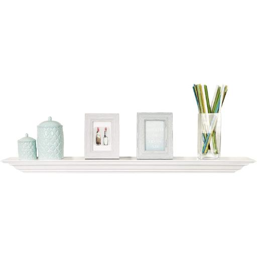 Blending traditional charm with modern utility, the WELLAND 48-inch mantel shelf features a classic crown molding design and a fresh white painted finish. Crafted from solid pine, it brings a clean yet decorative accent to any fireplace or wall. The built-in groove makes it ideal for displaying photos or artwork securely, while its durable build and hidden mounting system ensure a snug fit and smooth aesthetic.