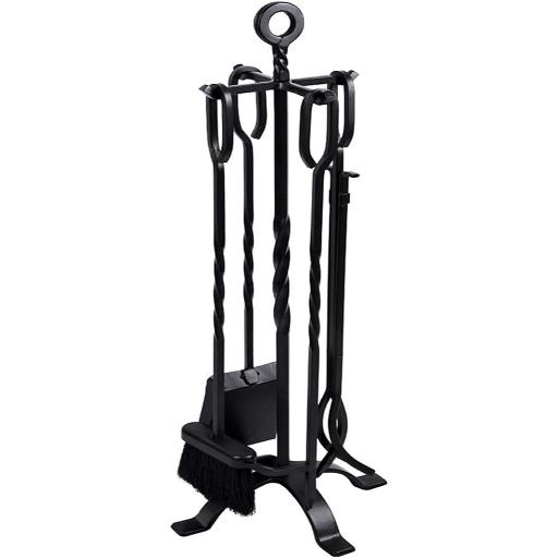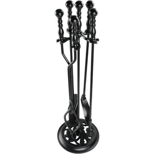 - 5-piece kit: poker, shovel, tongs, brush, and base
