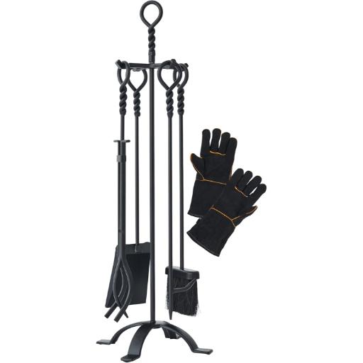 Lichamp 5-Piece Fireplace Tool Set with Heat-Resistant Gloves