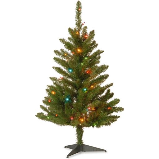 National Tree Company Pre-Lit Mini Kingswood Fir Christmas Tree – 3ft with Multicolor Lights