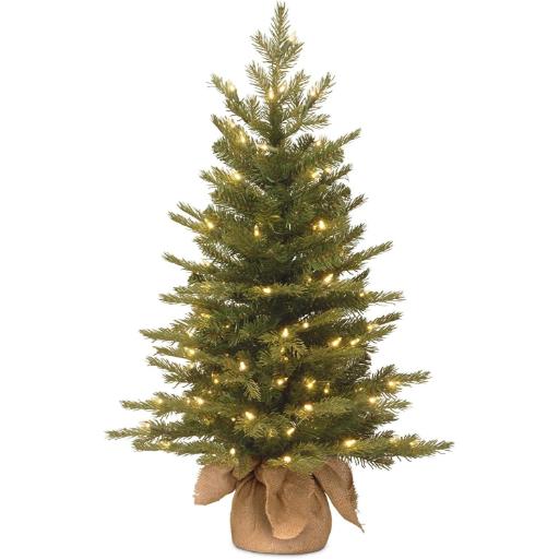 National Tree Company Pre-Lit ‘Feel Real’ Artificial Mini Christmas Tree – 3ft Nordic Spruce with Burlap Base