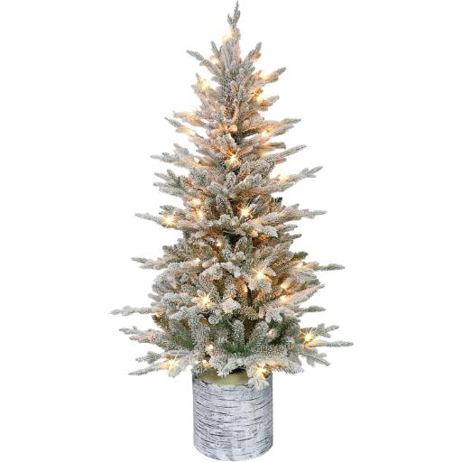 Puleo International 4.5-Foot Pre-Lit Potted Flocked Arctic Fir Christmas Tree