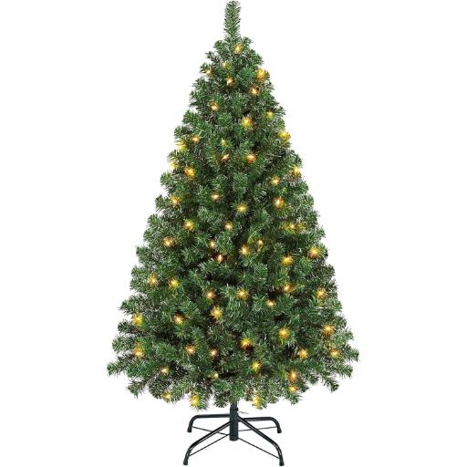 Yaheetech 4.5Ft Pre-Lit Artificial Christmas Pine Tree – Hinged with Foldable Stand