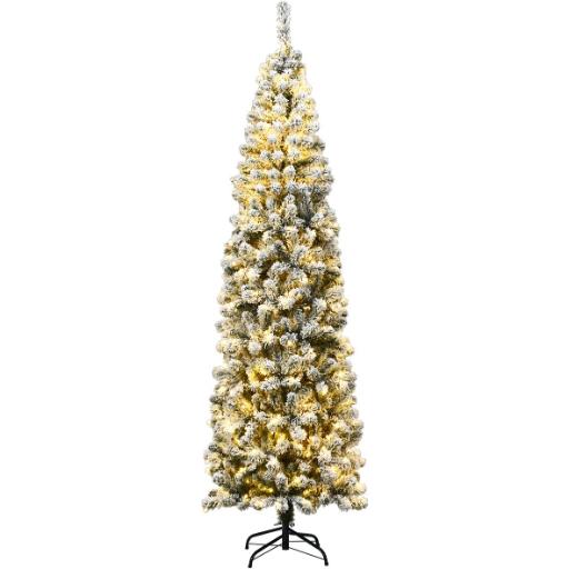 • Goplus 7.5FT Pre-Lit Snow Flocked Pencil Christmas Tree