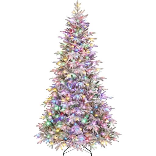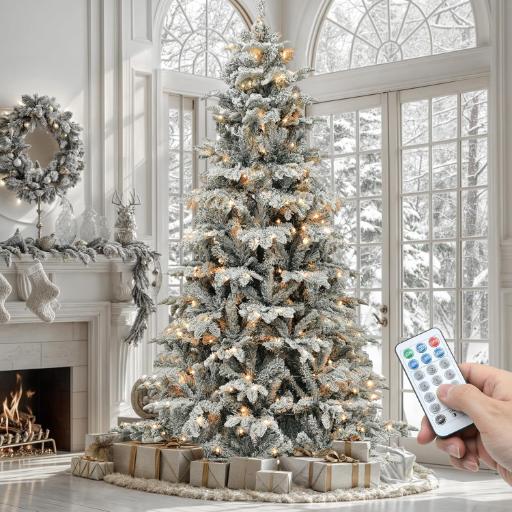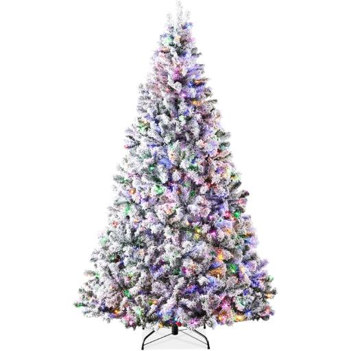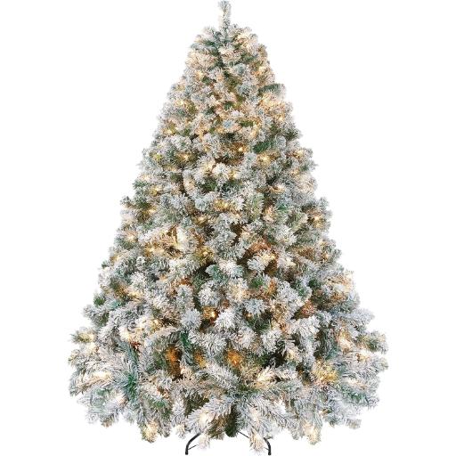 • TOWPONICS 7.5ft Pre-Lit Snow Flocked Artificial Christmas Tree