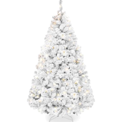 Best Choice Products 6ft Snow Flocked White Artificial Christmas Tree with 250 Lights